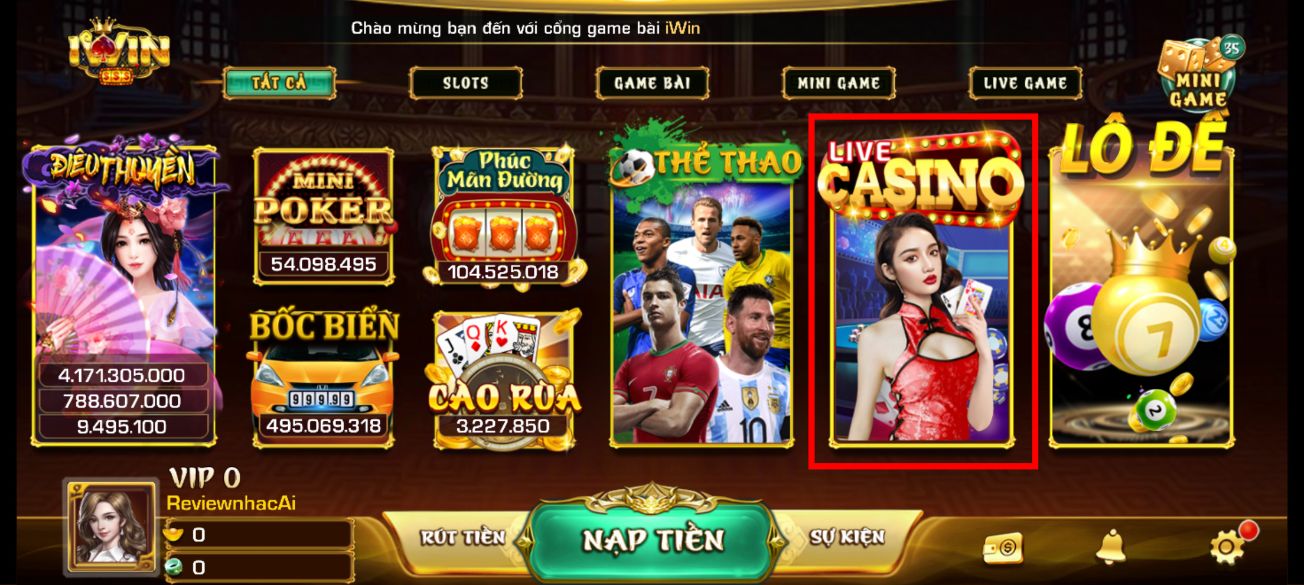 Tài khoản “motkiepdadinh”: Các trò chơi trong Live Casino của iWin Club thật tuyệt vời và chất lượng.