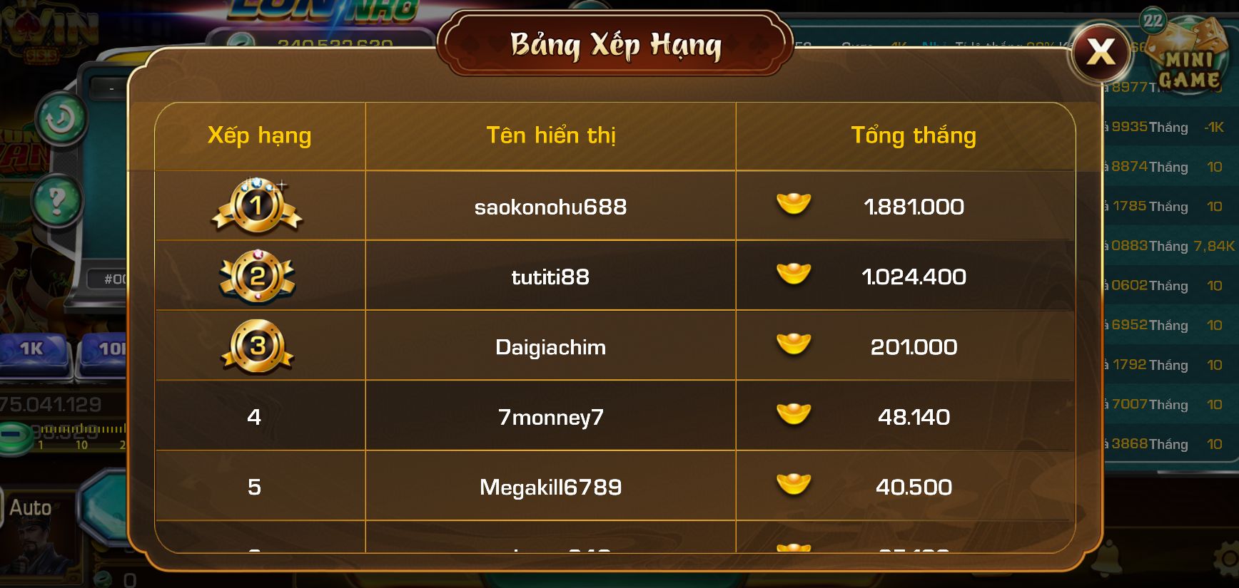 Luật chơi minigame Lớn nhỏ mà anh em cần biết