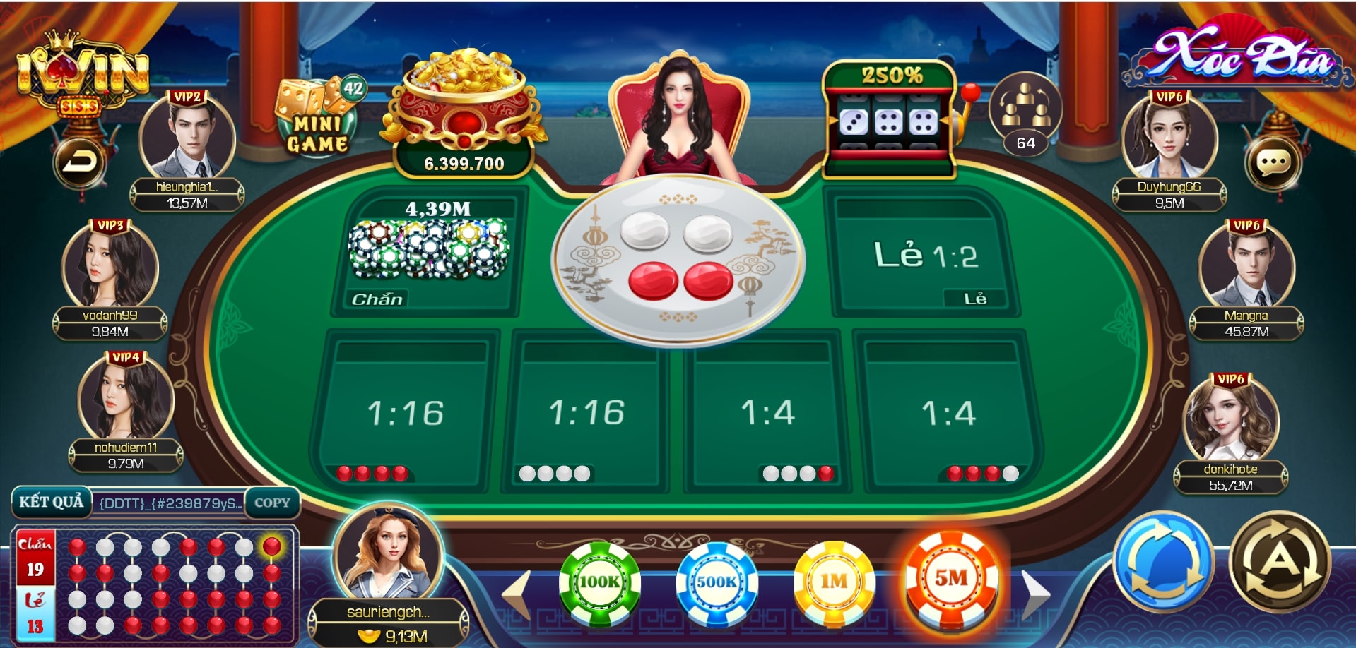 Thật không ngoa khi gọi iWin Club là “thiên đường mới” của các tay cược thủ vì hầu như trò nào tại iWin cũng được tích hợp rất nhiều đặc tính mới. Ngoài Tài Xỉu Nổ Hũ, Bầu Cua Nổ Hũ Tài Lộc, iWin còn có thêm một cực phẩm là trò Xóc dĩa tích hợp Nổ Hũ và Siêu Bão ứng dụng tính năng MD5 cho kết quả minh bạch. Có thể khẳng định, bạn sẽ không tìm được trò chơi Xóc dĩa kết hợp như thế này tạt bất kì cổng game nào khác, cứ như iWin muốn tặng thêm tiền cho người chơi bằng nhiều hình thức vậy. Để biết rõ hơn vì sao tạo có sự “tâng bốc hùng hồn” cho trò Xóc dĩa này, các cược thủ hãy tìm hiểu thêm dưới đây nhé!